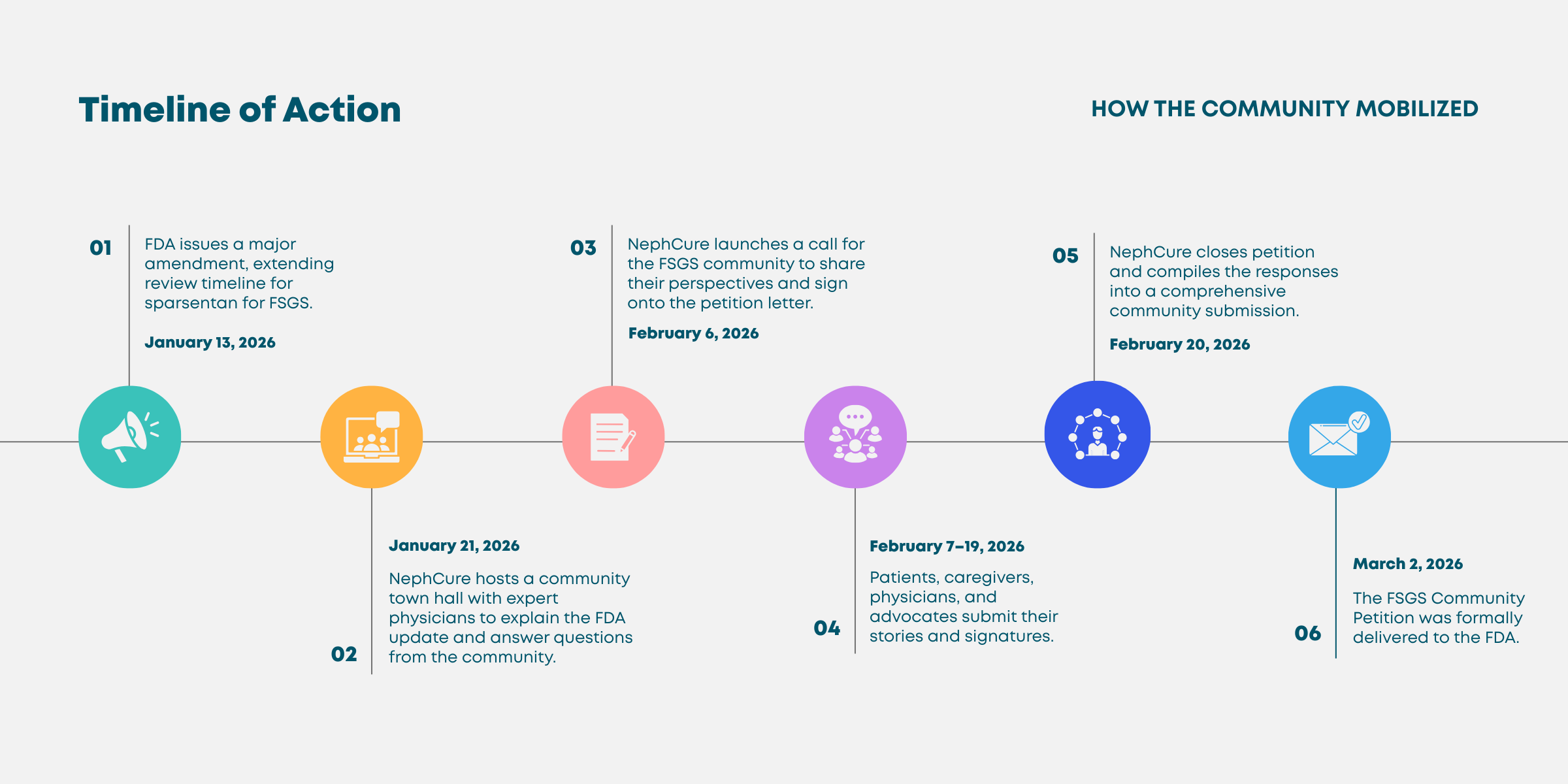 Within just four weeks, NephCure launched a community petition, invited individuals across the FSGS, and rare kidney disease, community to share their perspectives on the urgent need for additionaltreatment options, and compiled those voices into a formal submission delivered to the FDA.